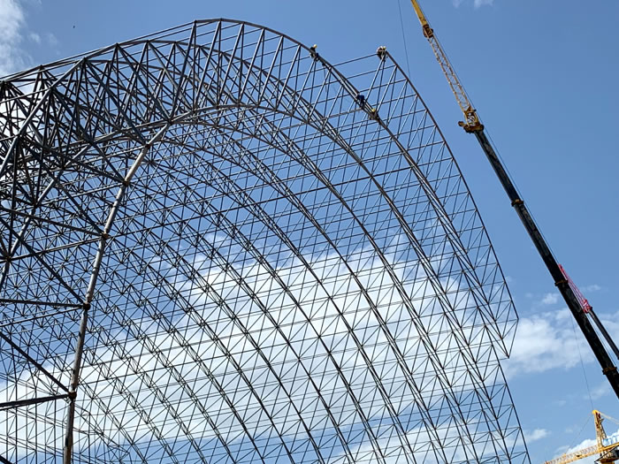 (2)网架加工前应对现场尺寸进行复测,确认无误后方可进行加工、安装;网架制作、运输、安装应遵守《空间网格结构技术规程》JGJ7-2010、《钢网架扬中螺栓球节点》JG/T 10-2009、《钢网架扬中螺栓球节点用高强度螺栓》 GB/T 16939-2016、《扬中钢结构扬中工程扬中施工规范》 GB50755-2012、《扬中钢结构扬中工程扬中施工质量验收标准》 GB50205-2020。